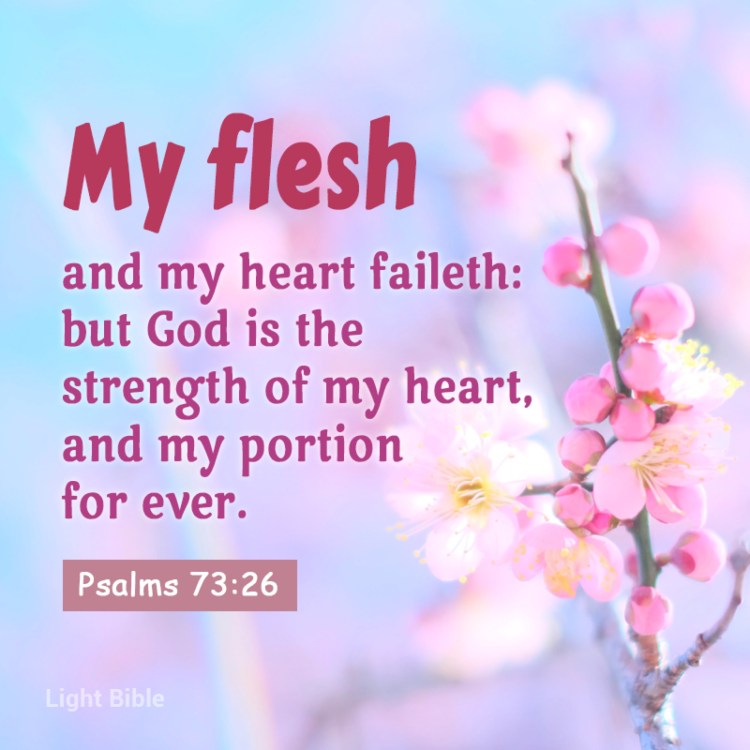 Nevertheless I am continually with thee: thou hast holden me by my right hand.Thou shalt guide me with thy counsel, and afterward receive me to glory.Whom have I in heaven but thee? and there is none upon earth that I desire beside thee.My flesh and my heart faileth: but God is the strength of my heart, and my portion for ever.