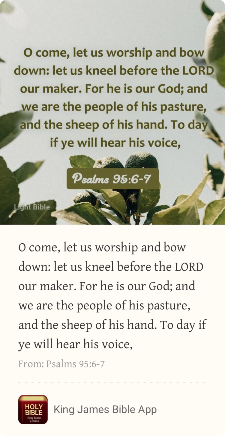 Psalms 95:6-7 Posted byAbiyah BinaOctober 26, 2021Posted inStepping Out On Faith Share Post Click to email a link to a friend (Opens in new window) Email Click to share on X (Opens in new window) X Click to share on LinkedIn (Opens in new window) LinkedIn Click to share on Pinterest (Opens in new window) Pinterest Click to share on Facebook (Opens in new window) Facebook Like Loading...